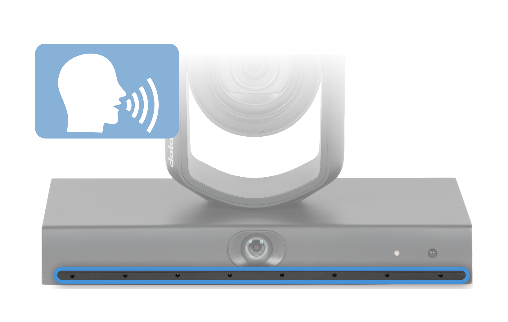 The built-in 8-microphone array accurately detects voice direction. Once a voice is identified, the panoramic lens confirms the speaker’s location, and the PTZ lens locks in with fluid, cinematic framing—creating an immersive and lifelike video experience.