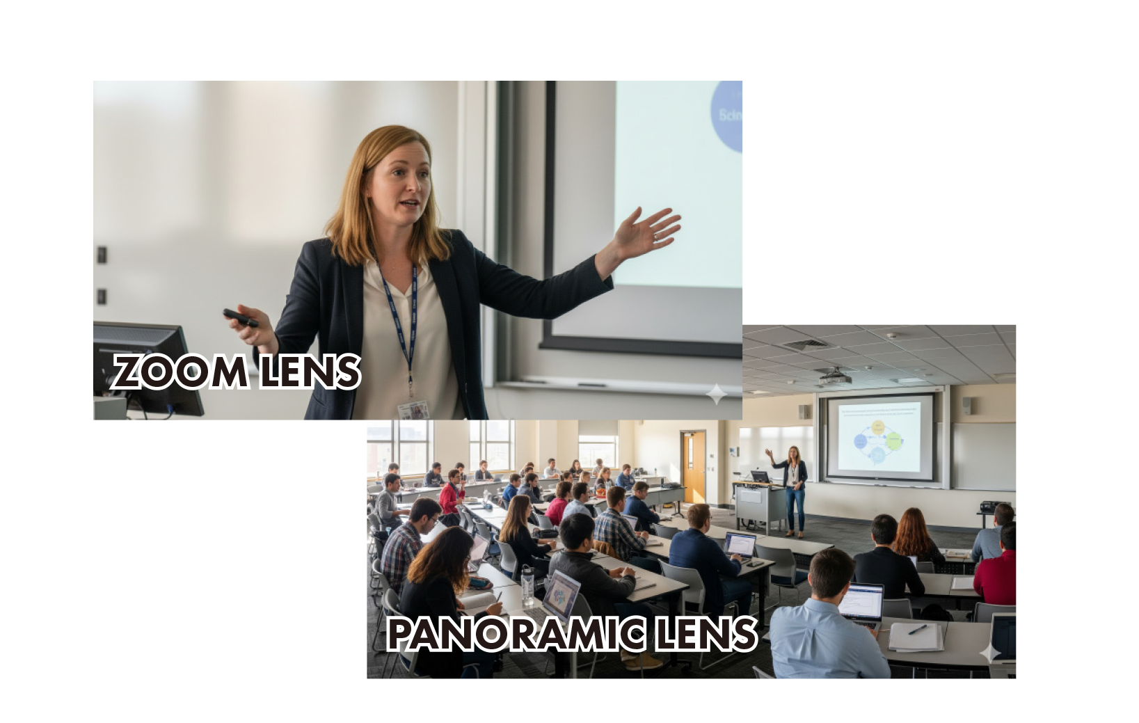 Dual-Lens Camera for Precise Tracking and Full Coverage