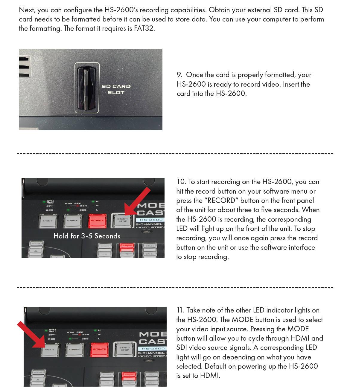 The Datavideo HS-2600 includes a streaming encoder and recorder. The encoder allows you to stream to two different CDN’s simultaneously.