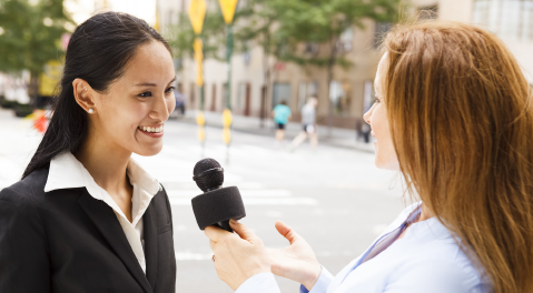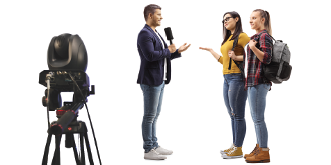 For a two-person interview, start by positioning each PTC-140 camera approximately six feet in front of the talent in the center. Use a tripod to mount each camera. Check to make sure that your tripod and camera are level.